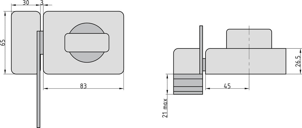 BASI KS 500-45 Braun Türzusatzschloss Eckig Sperrbügel Dornmaß 45mm
