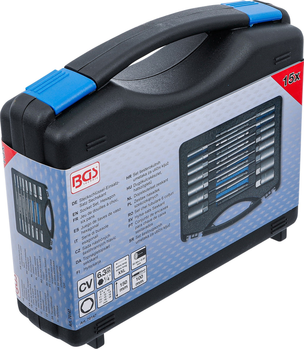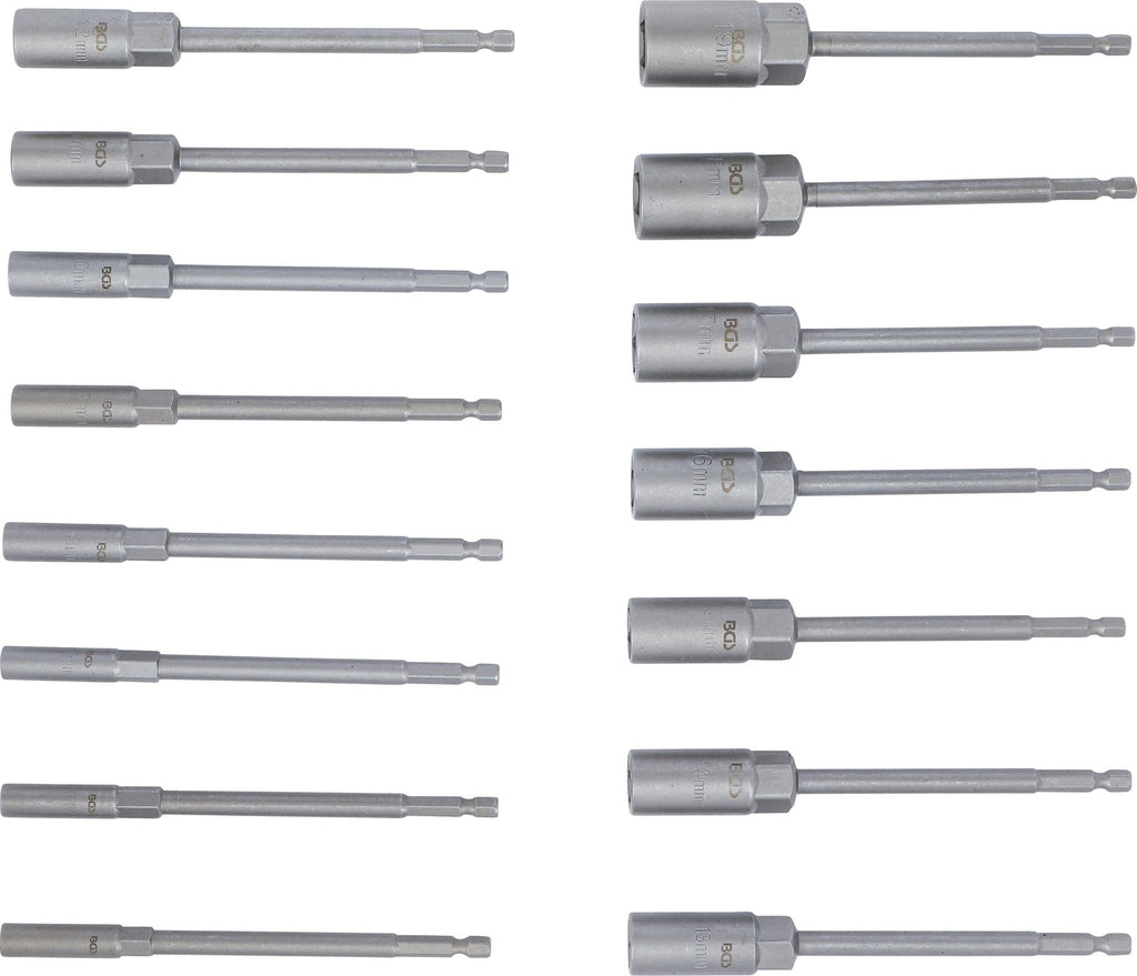 BGS 70147 Satz Steckschlüsseleinsätze Sechskant extra lang Antrieb 6,3mm (1/4") SW 5,5 - 19mm für Bohrmaschinen