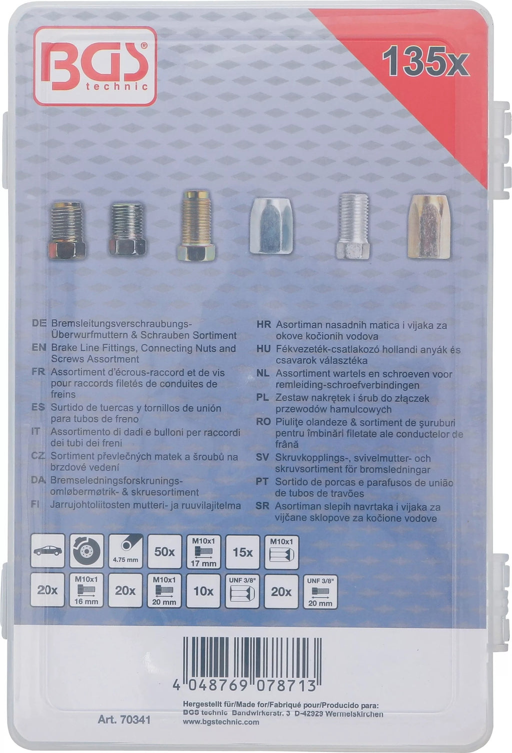 BGS 70341 Sortiment Bremsleitungsverschraubungen Überwurfmuttern Schrauben 135 teilig