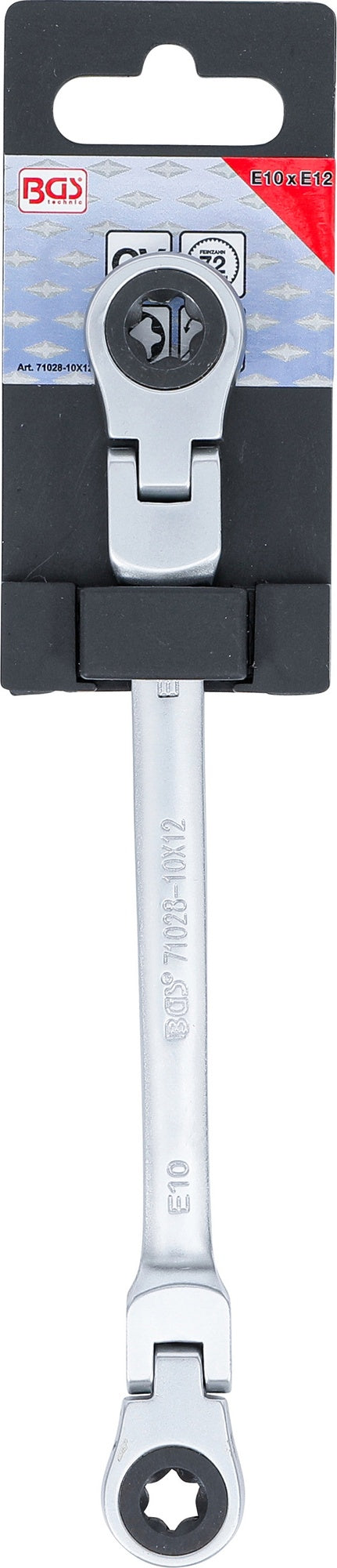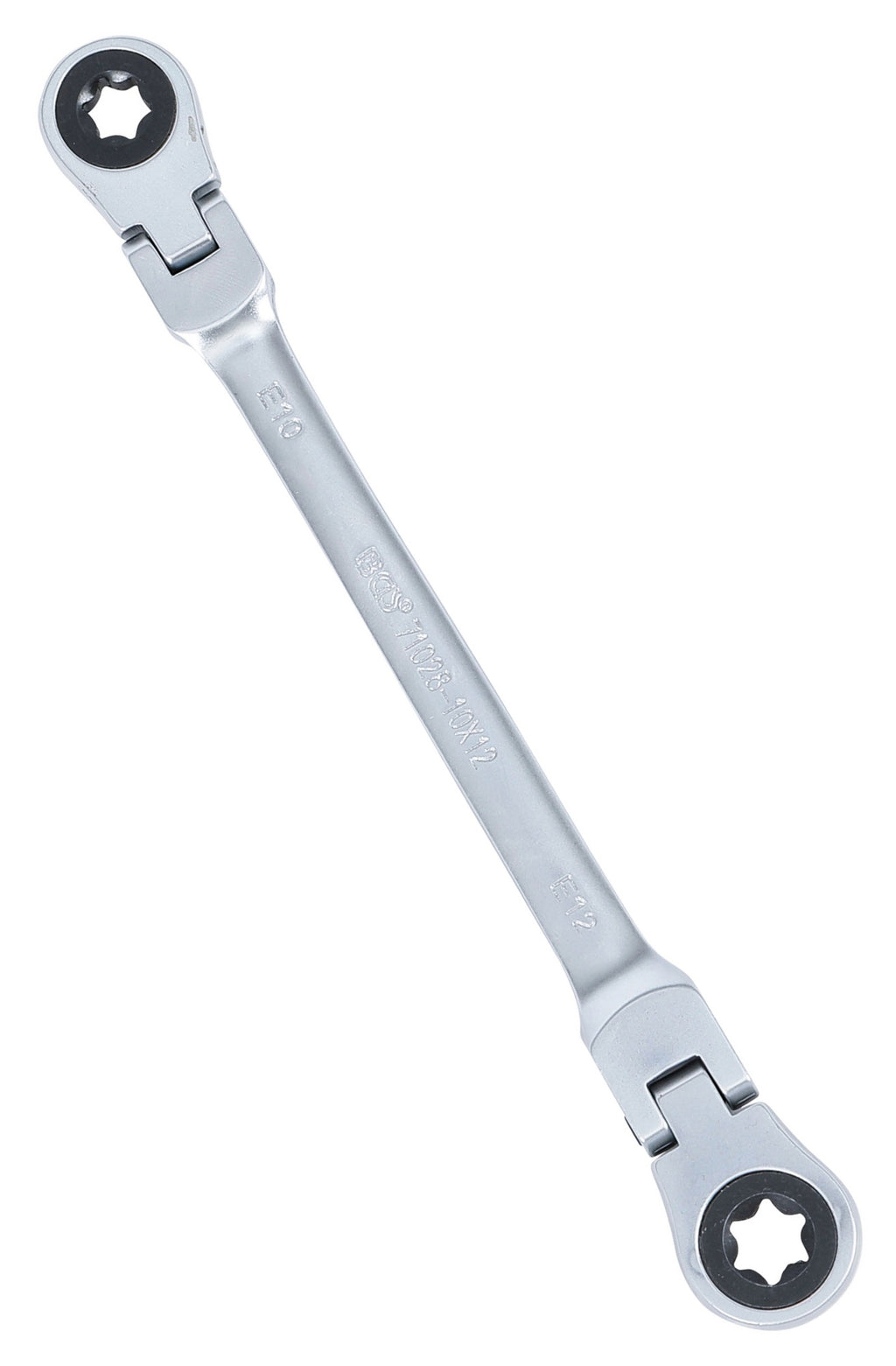 BGS 71028-10X12 Doppel Ratschenringschlüssel abwinkelbar mit E-Profil Ringköpfen SW E10 x E12