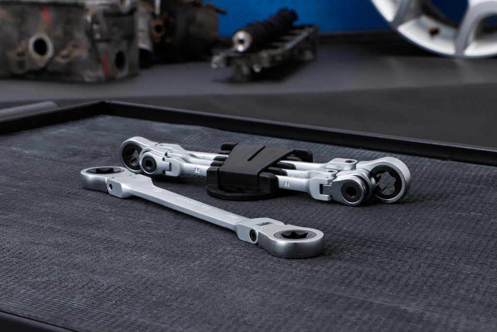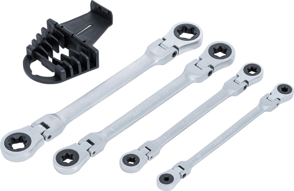 BGS 71028 Satz Doppel Ratschenringschlüssel abwinkelbar mit E-Profil Ringköpfen SW E6 - E24