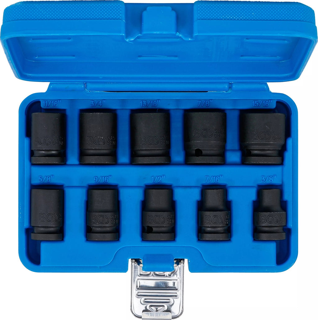 BGS 74296 Satz Kraft Steckschlüsseleinsätze Sechskant Zollgrößen 3/8"-15/16" Antrieb 12,5mm (1/2")