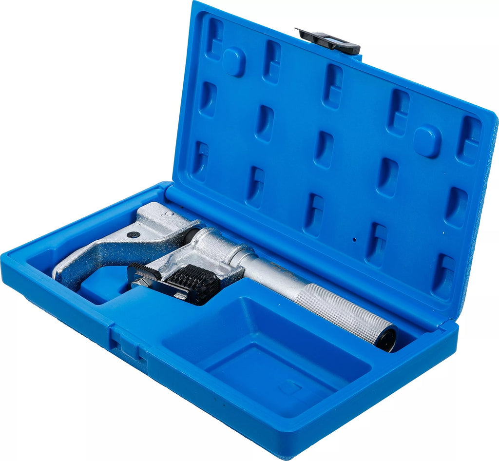 Der Gewindestrehler wird in eine Gewindeschneidmaschine oder einen speziellen Gewindeschneidbohrer eingesetzt. Das Werkzeug wird auf das Werkstück gedrückt und in das Material gedreht, um das Gewinde zu schneiden. Durch die Drehbewegung und den Druck schneidet der Gewindestrehler das Material ab und hinterlässt das gewünschte Gewindeprofil.