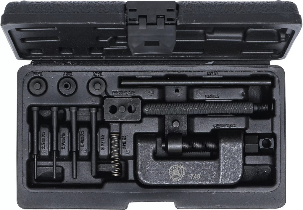 BGS DIY 1749 Werkzeug zum Trennen und Nieten von Motorradkette 13teiliger Satz