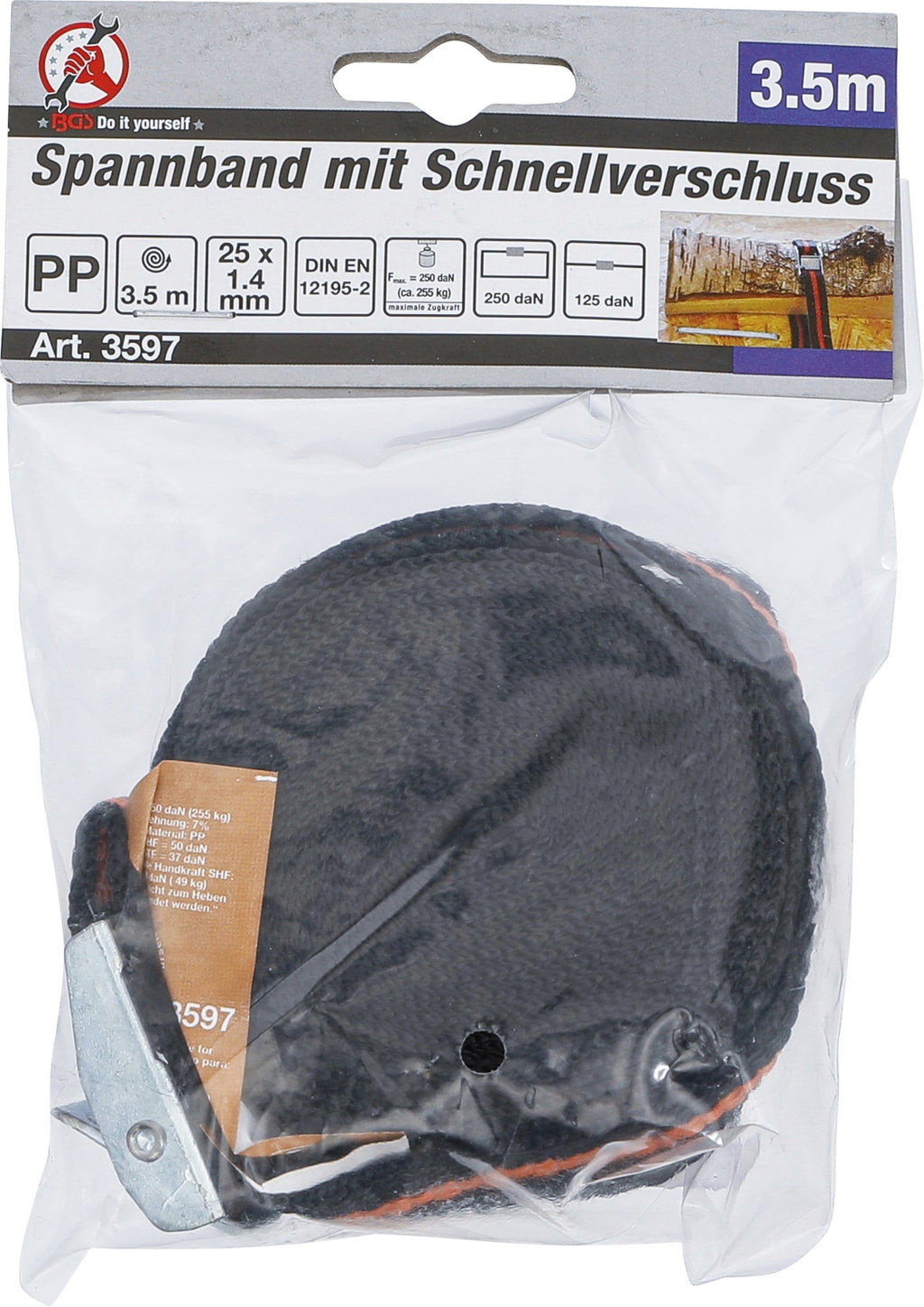 BGS DIY 3597 Spannband mit Schnellverschluss 3,5m x 25mm