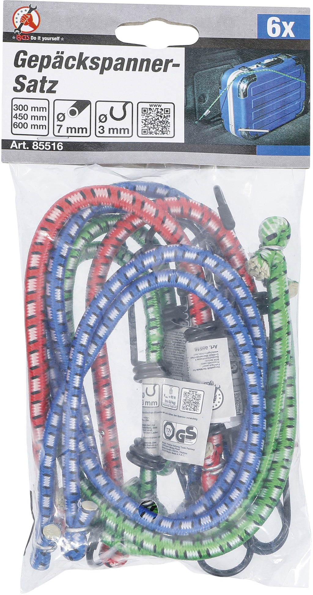 BGS DIY 85516 Satz Gepäckspanner Länge 300mm & 450mm & 600mm 6 teilig