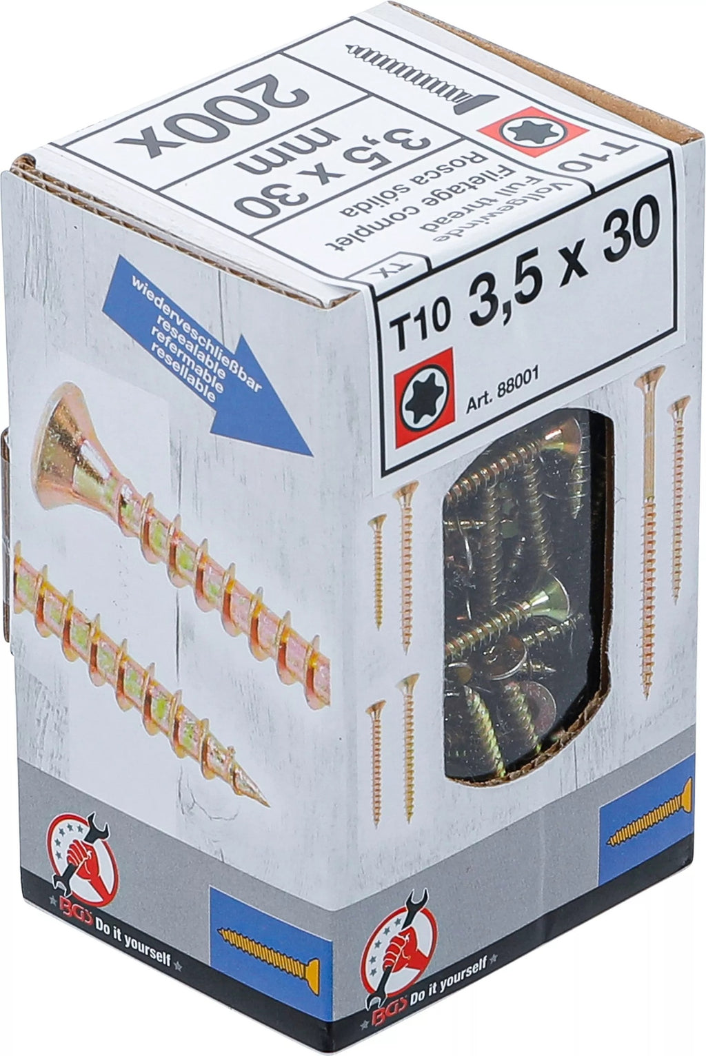BGS DIY 88001 Satz Mehrzweckschrauben T-Profil (für Torx) T10 3,5x30mm 200 Stück