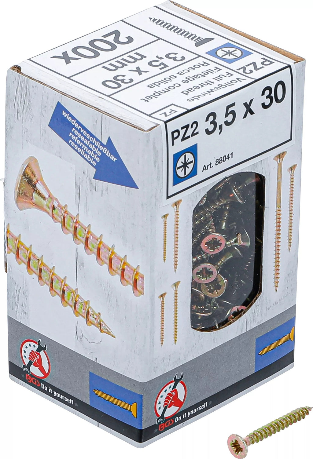 BGS DIY 88041 Satz Mehrzweckschrauben Kreuzschlitz PZ2 3,5x30mm 200 Stück