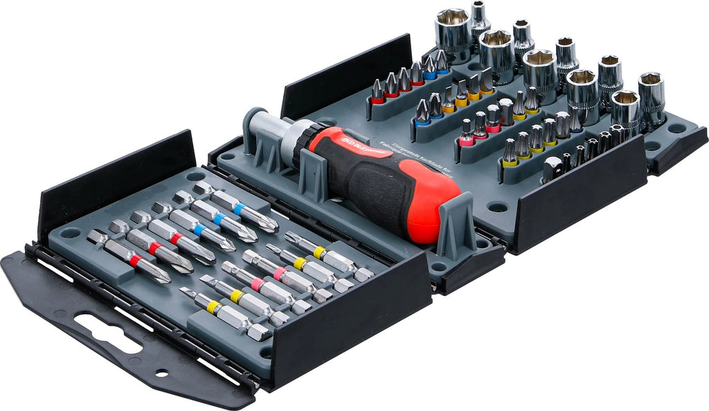 BGS DIY 90105 Satz Steckschlüsseleinsätze Biteinsätze mit Ratschen Drehgriff für Bits umschaltbar