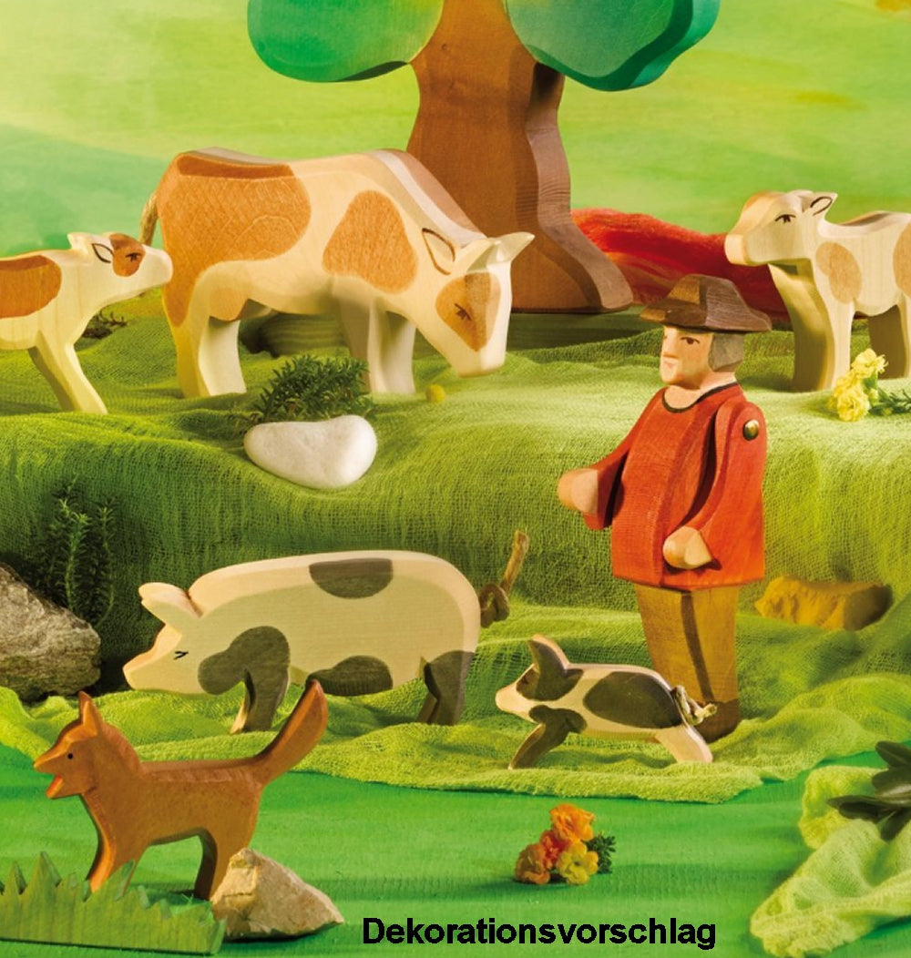OSTHEIMER 11025 Kalb braun trinkend Höhe 7cm aus Holz Familie & Bauernhof