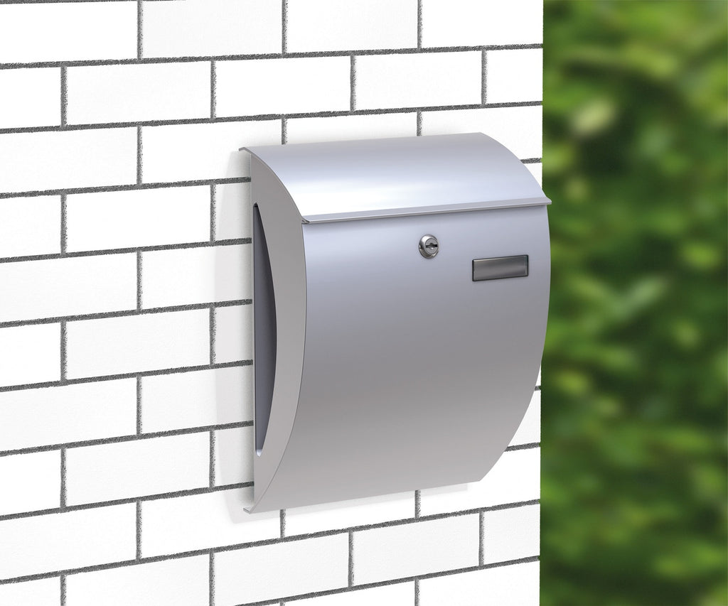 BASI 2170-2001 BK 2000 Briefkasten Stahl Silber Namensschild Zeitungsfach 310 x 405 x 158mm