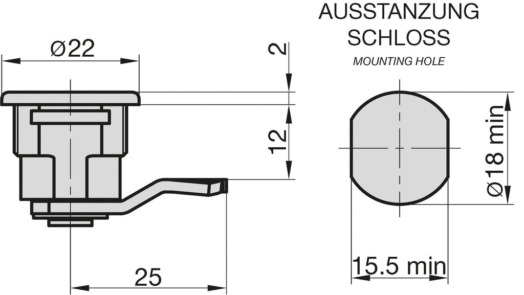 BASI 9000-1309 Hebelschloss HS 309 für Briefkästen von JU Briefkastenschloss