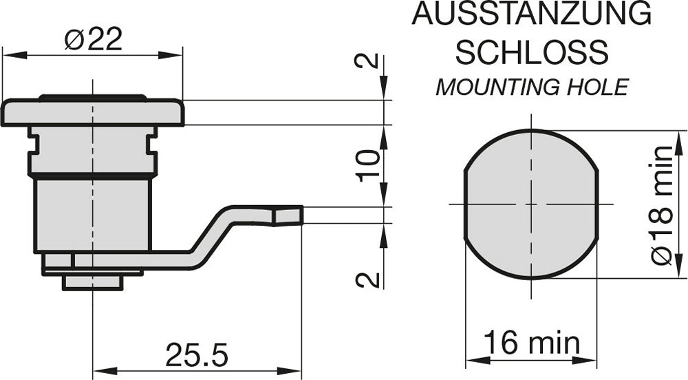 BASI 9000-1322 Hebelschloss HS 322 für Briefkästen von JU Briefkastenschloss