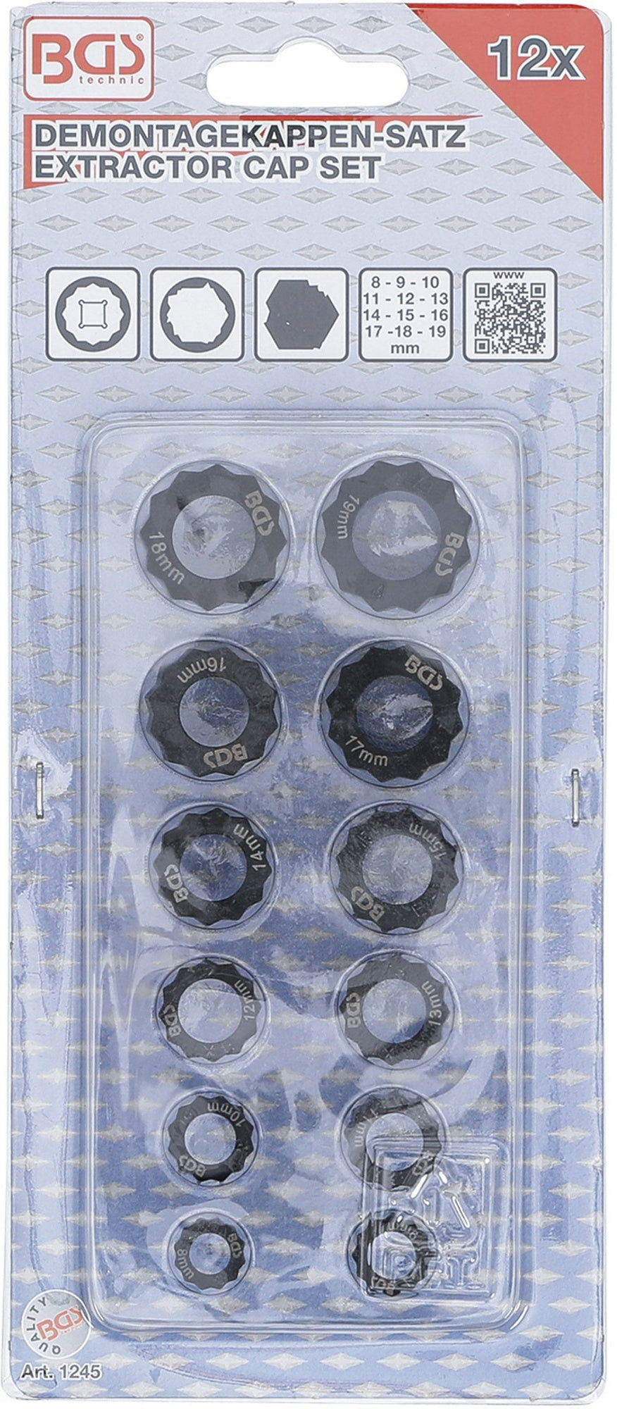 BGS 1245 Satz Demontagekappen für beschädigte Sechskant-Schrauben und Muttern 12-teilig