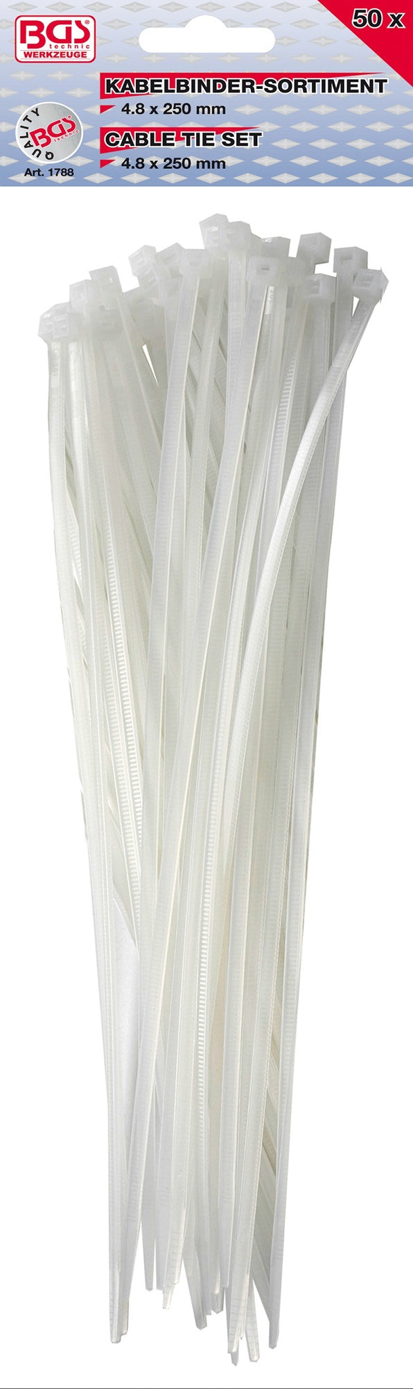 BGS 1788 Sortiment Kabelbinder weiß 4,8 x 250mm 50 teilig