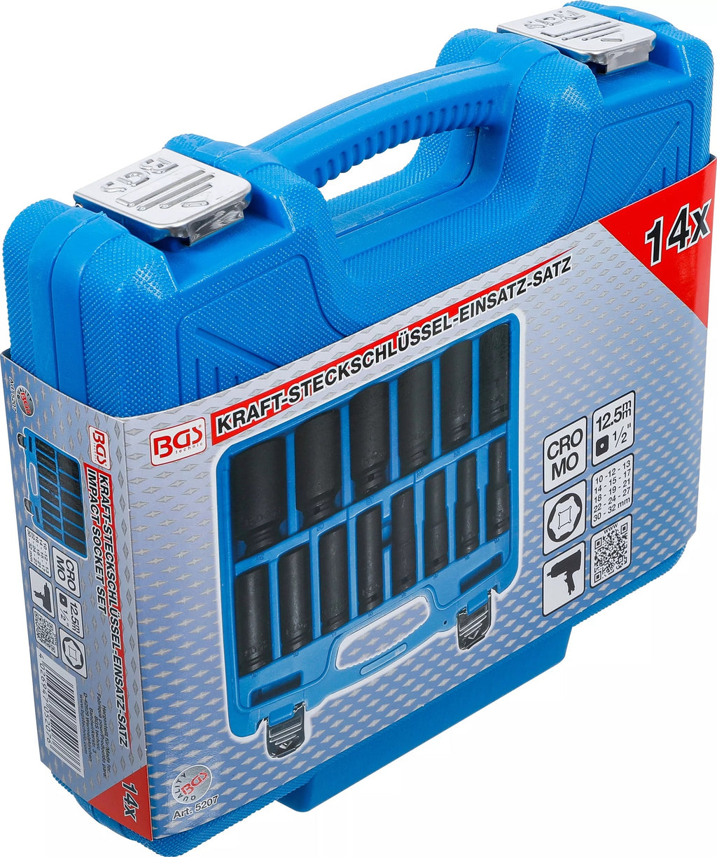 BGS 5207 Satz Kraft Steckschlüsseleinsätze Sechskant Antrieb Innenvierkant 12,5mm (1/2") SW10-32mm