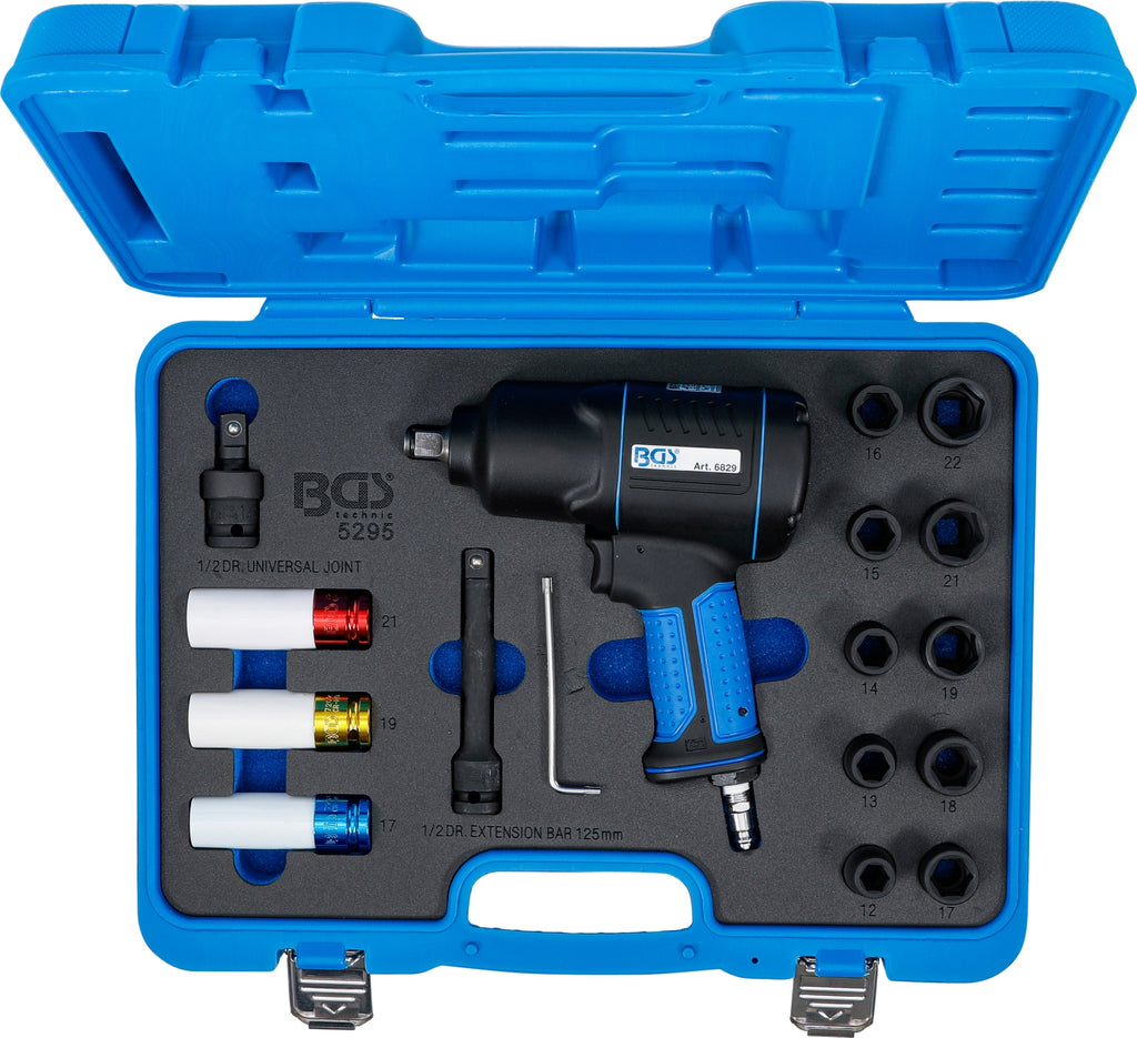 BGS 5295 Satz Kraft Steckschlüssel 12,5mm (1/2") & Druckluft Schlagschrauber 1200 Nm 16 teilig