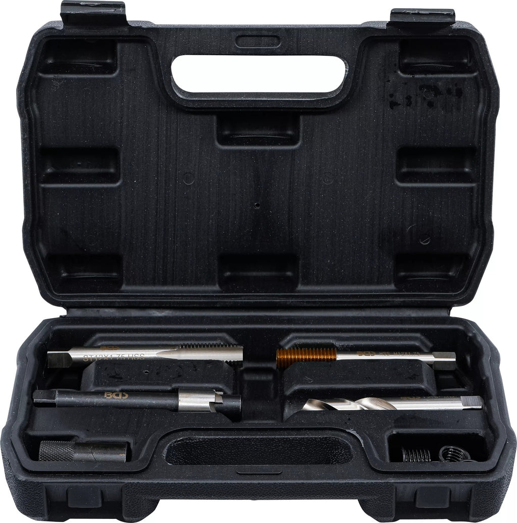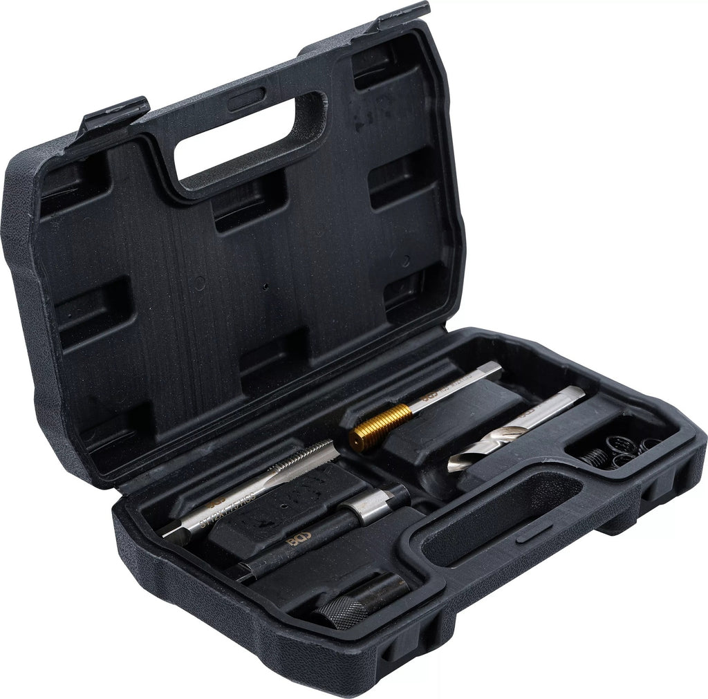 - Ein Ölablassgewinde Reparatursatz ist ein Werkzeugset, das verwendet wird, um beschädigte oder abgenutzte Ölablassgewinde an Fahrzeugen oder anderen Maschinen zu reparieren. Das Ölablassgewinde befindet sich in der Regel an Ölwanne oder an einem anderen Ölbehälter und wird verwendet, um das Öl abzulassen.