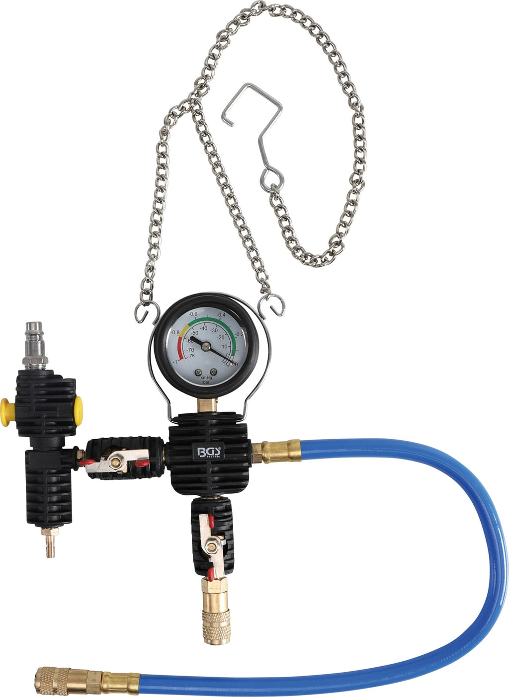 BGS 8098-1 Befüllarmatur für Kühlsystem mit Ventilen, Anschlüssen und Messuhr