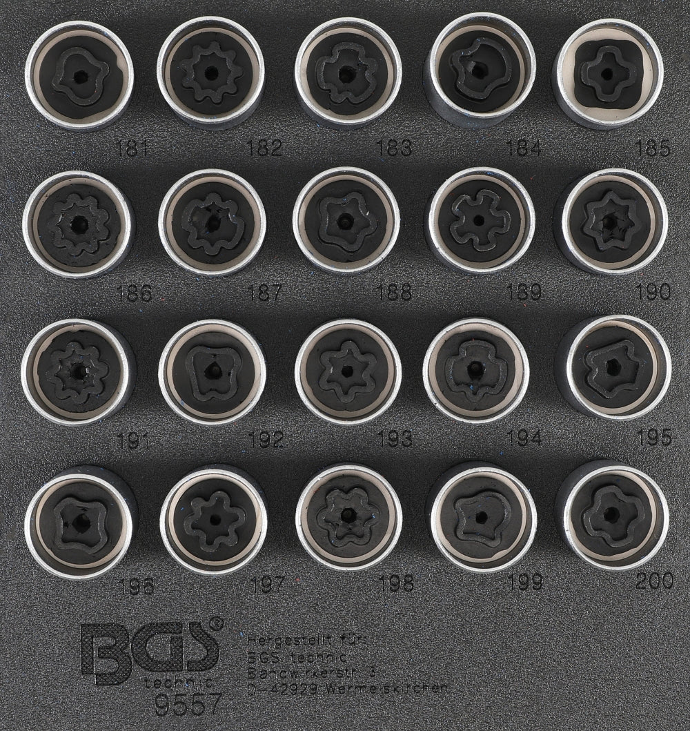 BGS 9557 Satz Werkzeug für Felgenschlösser für Opel Typ B 20 teilig Werkstattwageneinlage 1/6