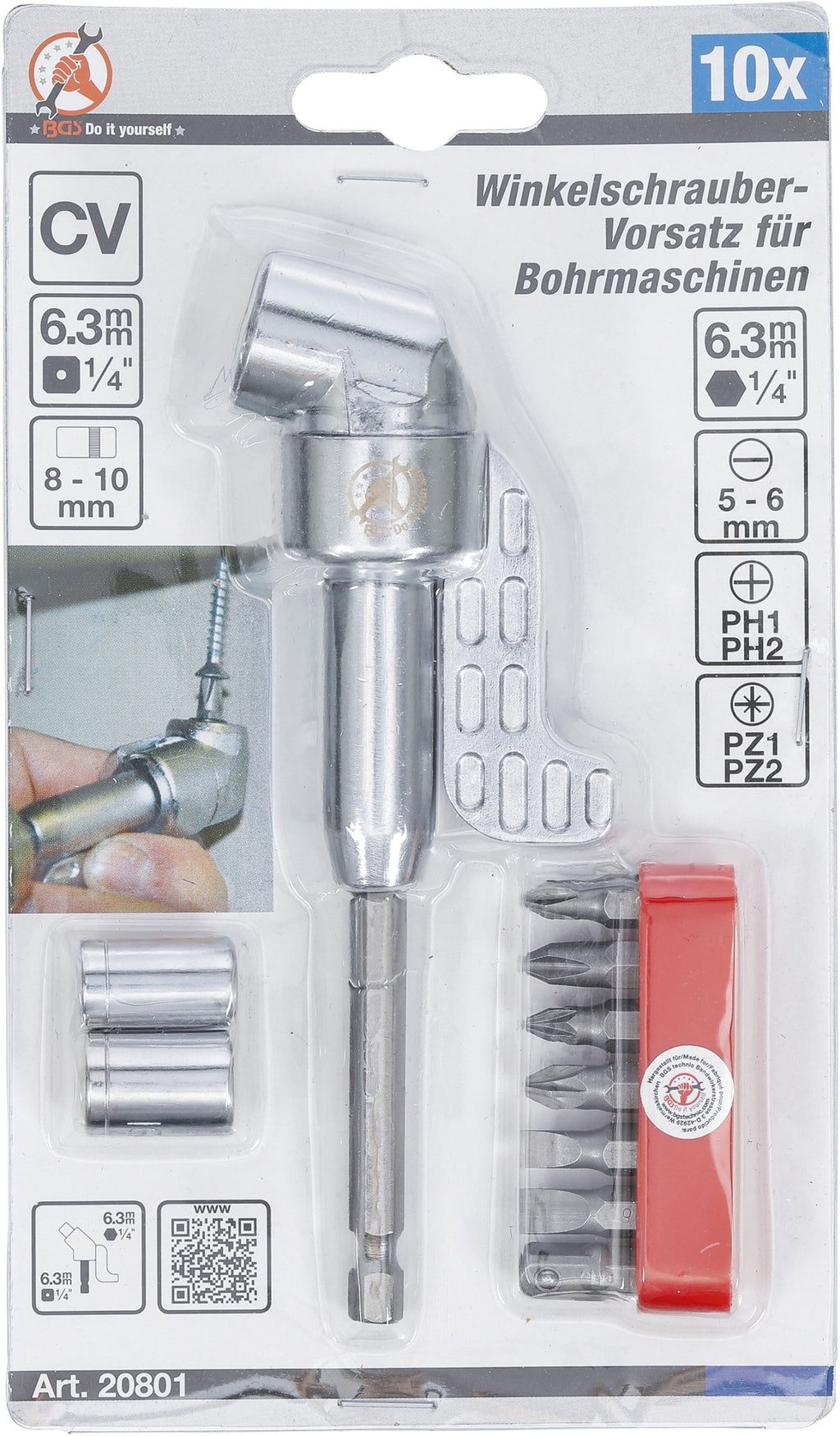 BGS DIY 20801 Winkelschrauber Vorsatz für Bohrmaschinen 10 teilig
