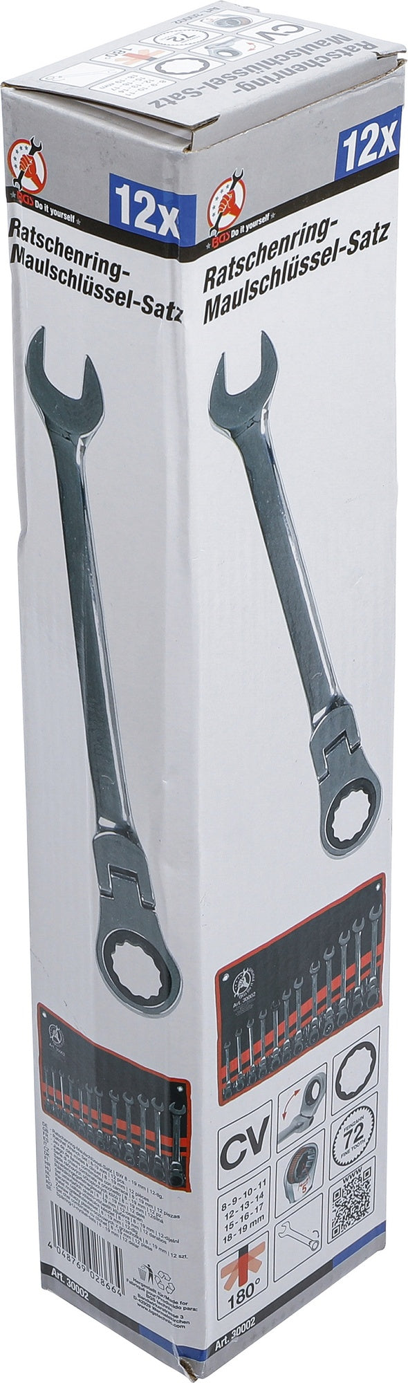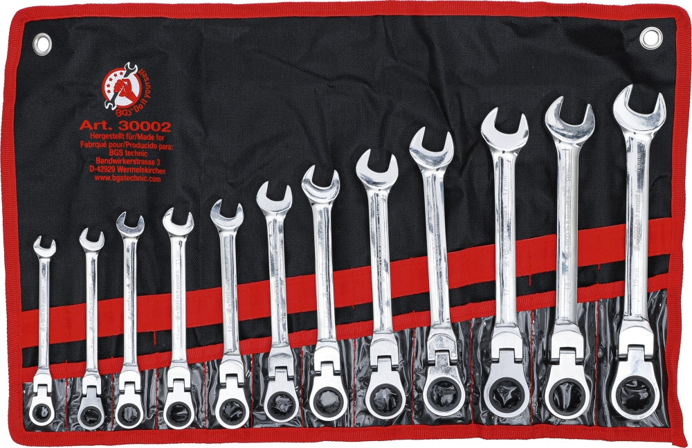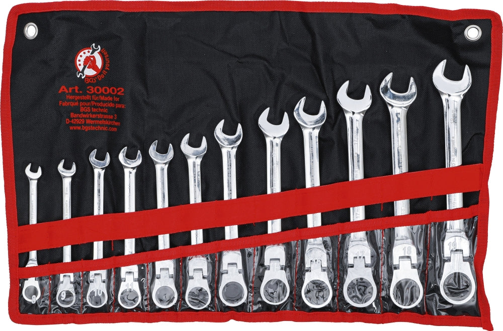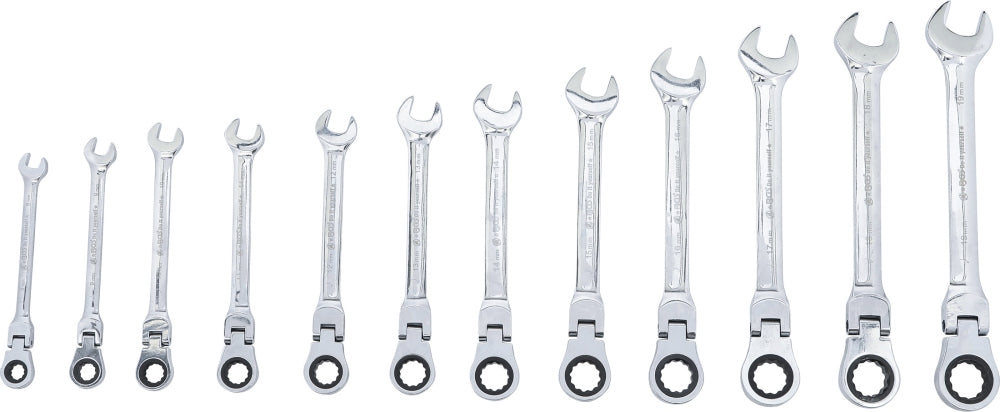BGS DIY 30002 Satz Ratschenringmaulschlüssel flexible Köpfe SW 8 - 19mm 12 teilig