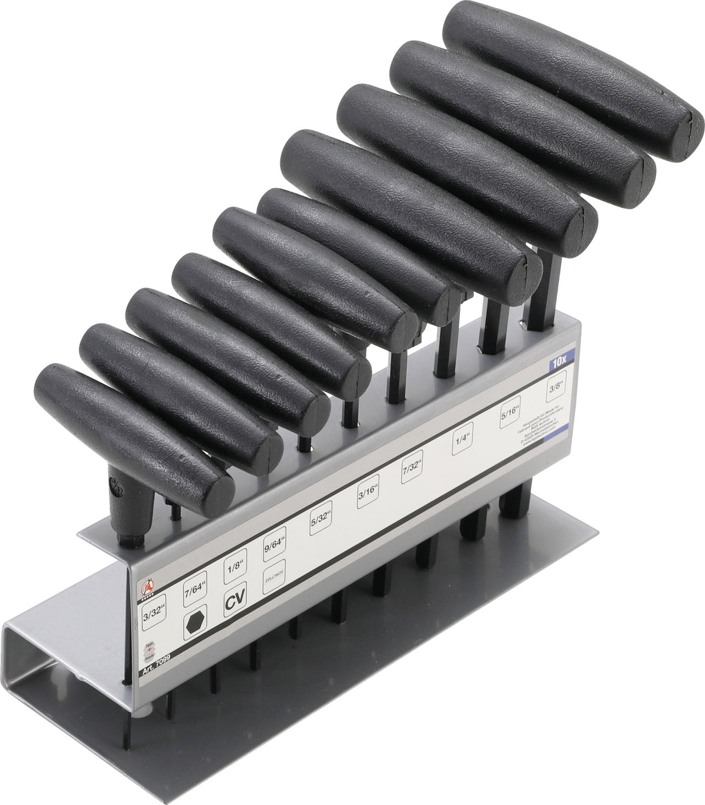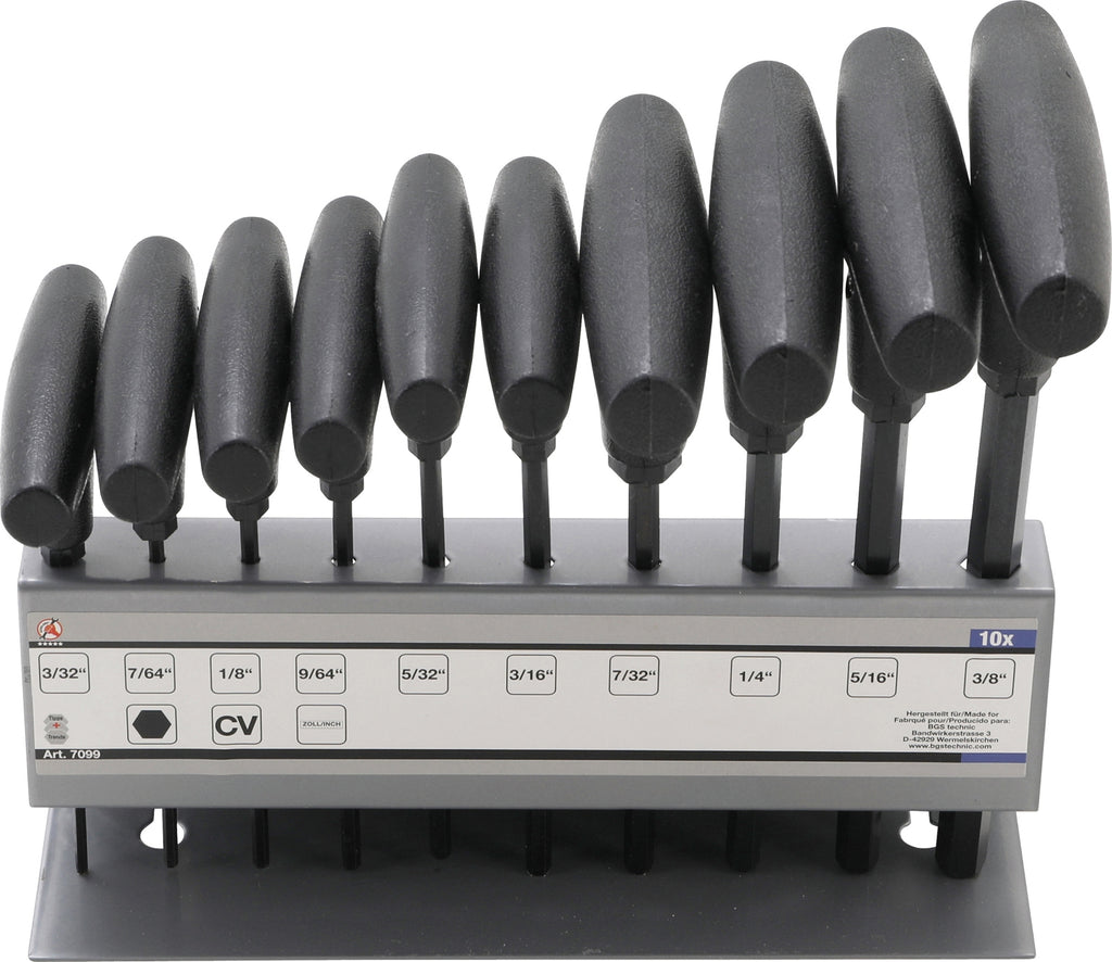 BGS DIY 7099 T-Griff / Stiftschlüssel Schlüsselsatz Innensechskant in ZOLL 10 teilig von 3/32" bis 3/8"