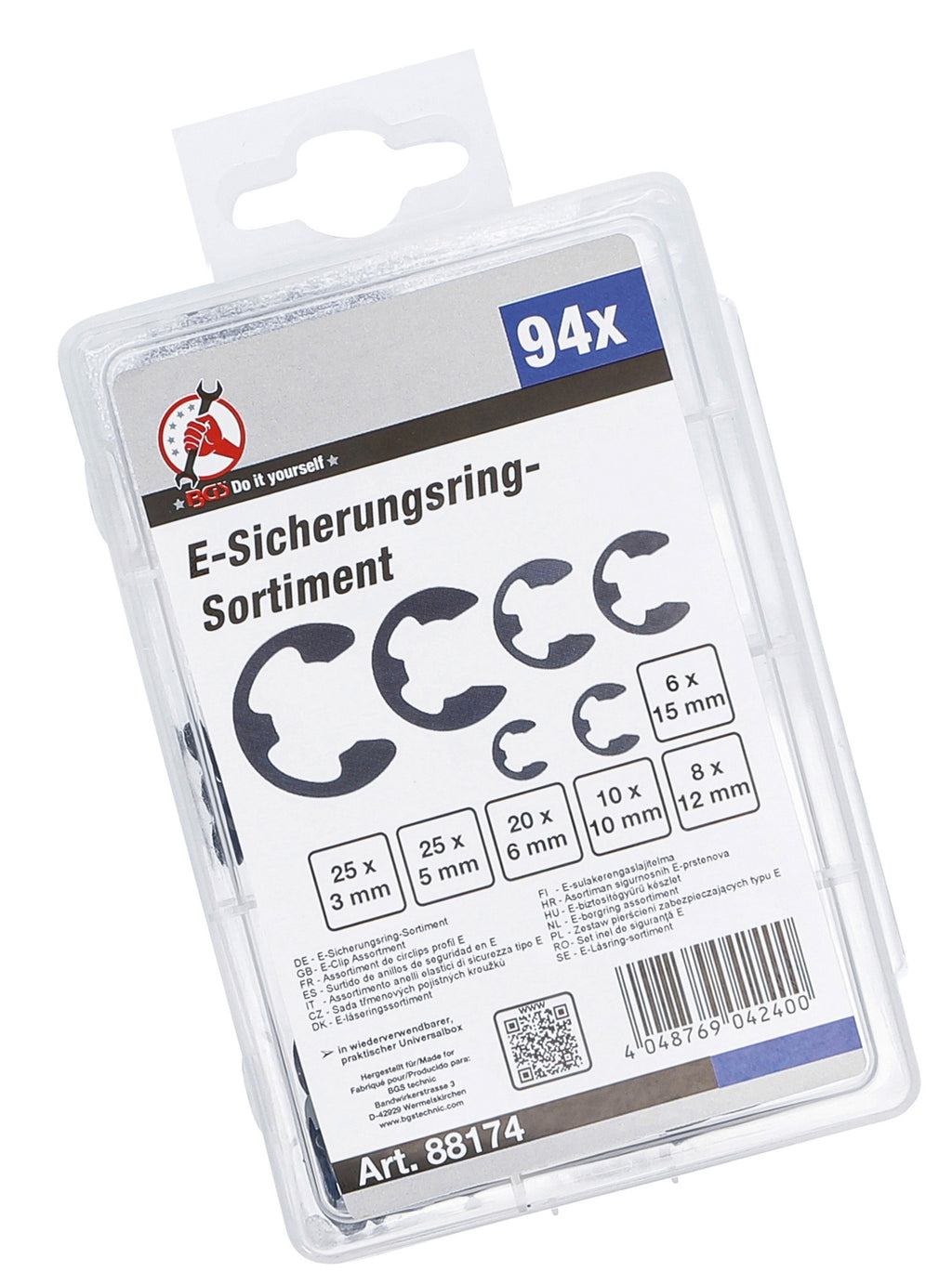 BGS DIY 88174 Sortiment E-Sicherungsringe 3 - 15mm 94 teilig