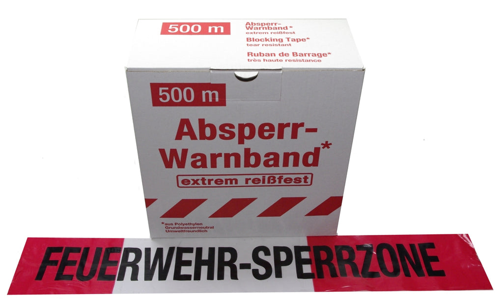 FLUID 10029 Absperrband Warnband EXTREM REISSFEST Rot Weiß mit Aufdruck FEUERWEHR-SPERRZONE Länge 500m