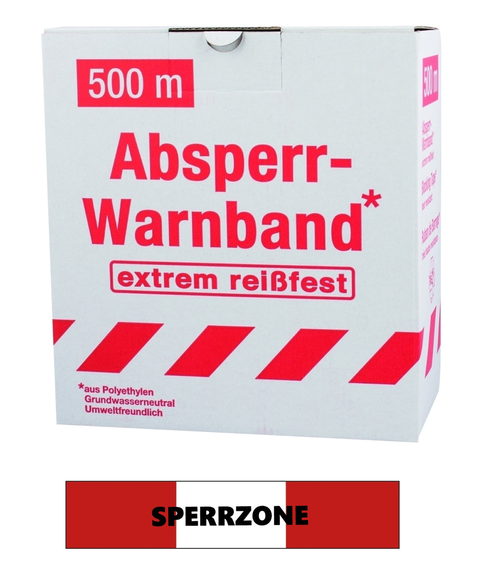 FLUID 10036 Absperrband Warnband EXTREM REISSFEST Rot Weiß mit Aufdruck SPERRZONE Länge 500m