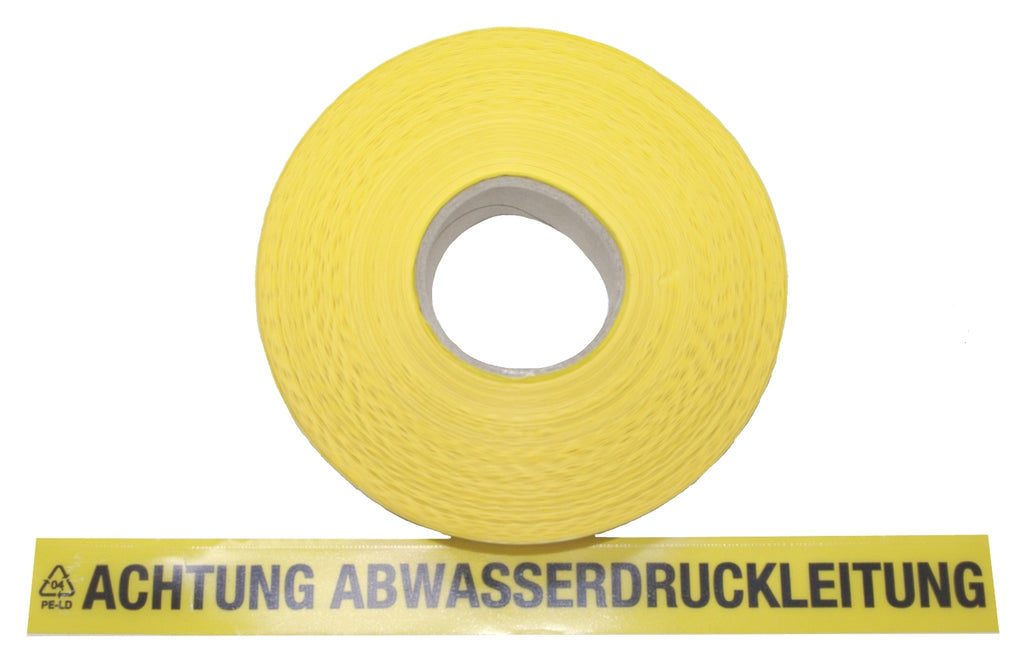 FLUID 20014 Trassenwarnband aus PE Gelb mit Aufdruck ACHTUNG ABWASSERDRUCKLEITUNG Länge 250m