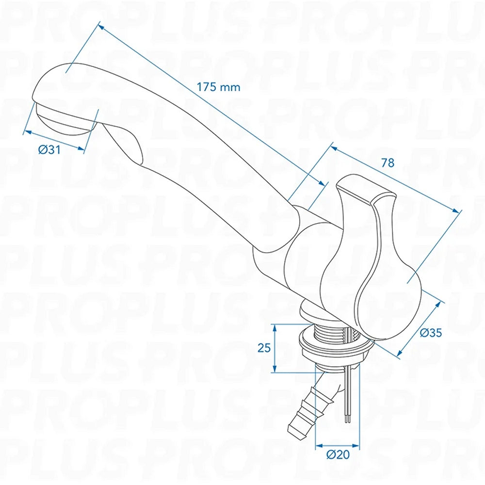 ProPlus 151212V03S Kalt Wasserhahn Style 2005 12V Ø20mm Chrom/Schwarz