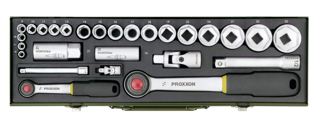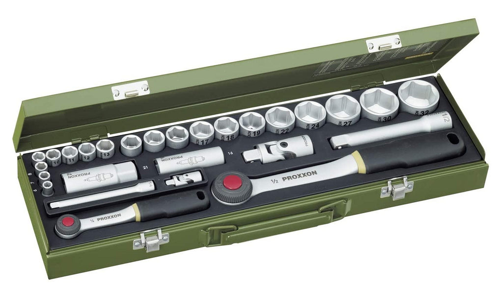PROXXON 23020 PKW Steckschlüsselsatz Knarrenkasten mit 2 Knarren 27 tlg