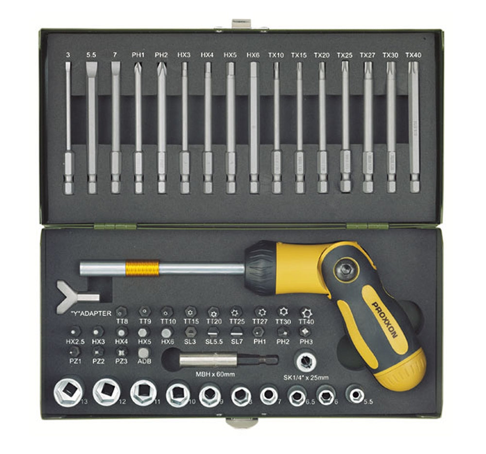 PROXXON 23104 Schraubersatz mit knickbarem Ratschen Schraubendreher 54 teilig