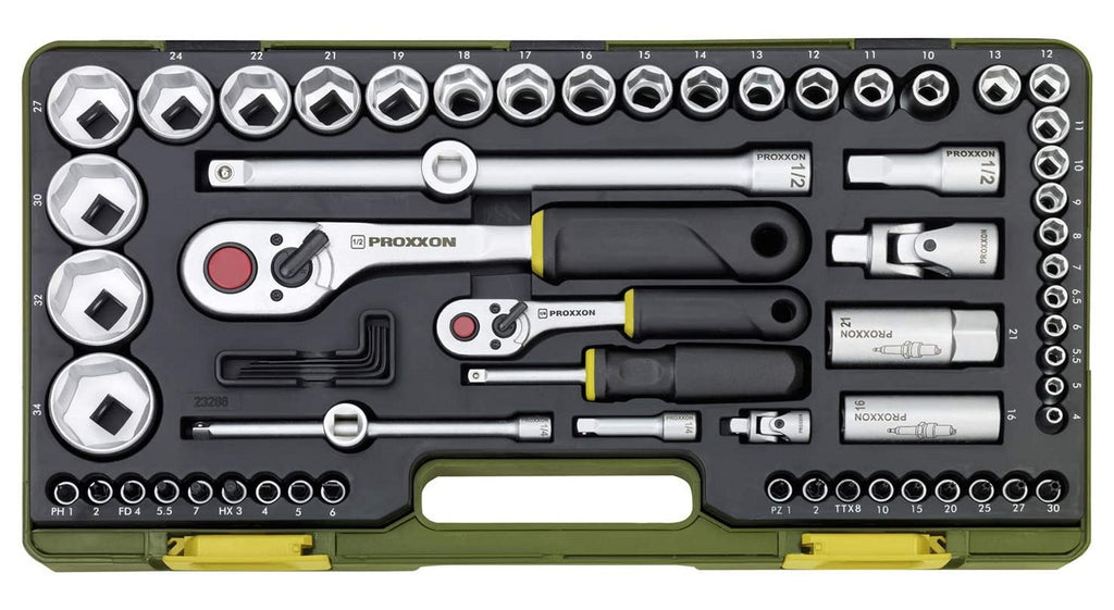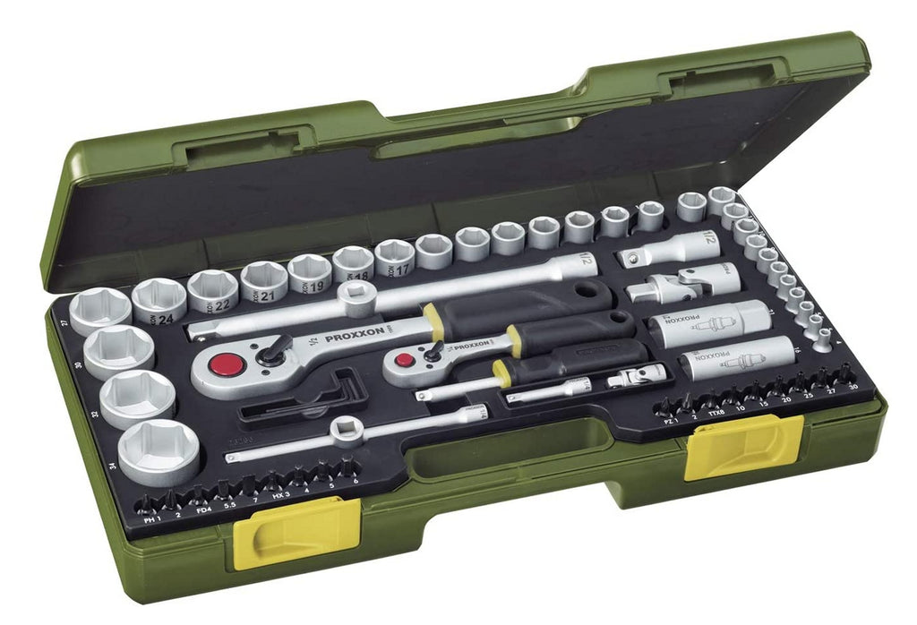 PROXXON 23286 Nusskasten Knarrenkasten mit 6,3mm (1/4") + 12,5mm (1/2") Knarren